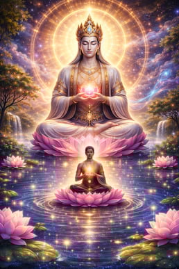 À travers cet enseignement, le Bouddha de la Compassion transmet une compréhension fondamentale : la compassion n’est pas seulement une qualité tournée vers autrui, elle est aussi une force de protection intérieure. Elle préserve la pureté de l’amour dans l'être, même au contact du manque de lumière, de la dureté ou de la violence du monde.